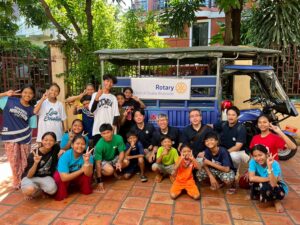 急速な都市開発により、カンボジア・プノンペン市内では交通事故が多発しています。当クラブは、交通事故から子どもたちを守るため、くっくま孤児院に通学用トゥクトゥクを贈呈しました。